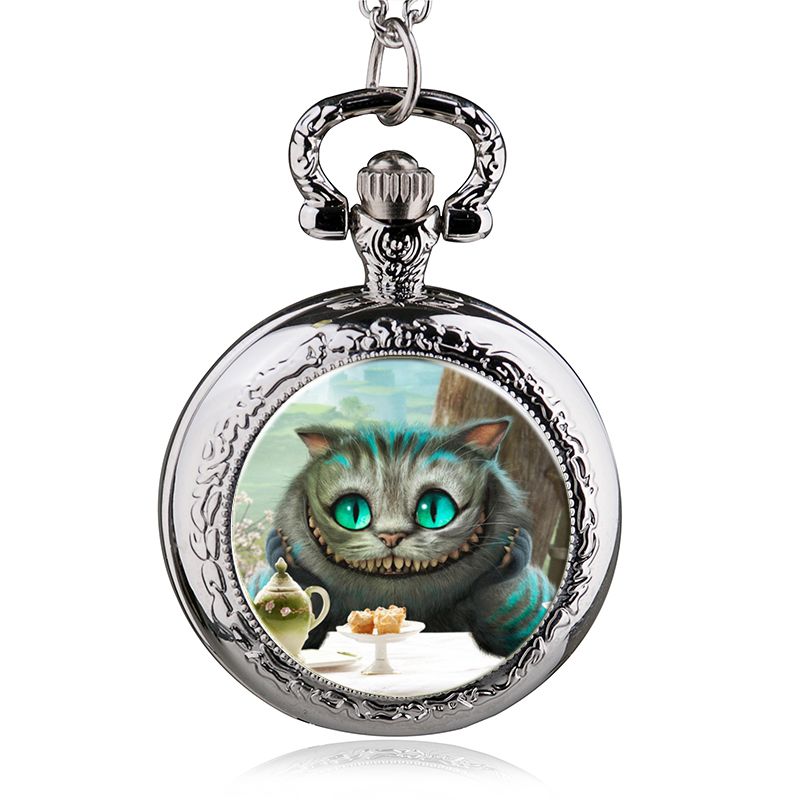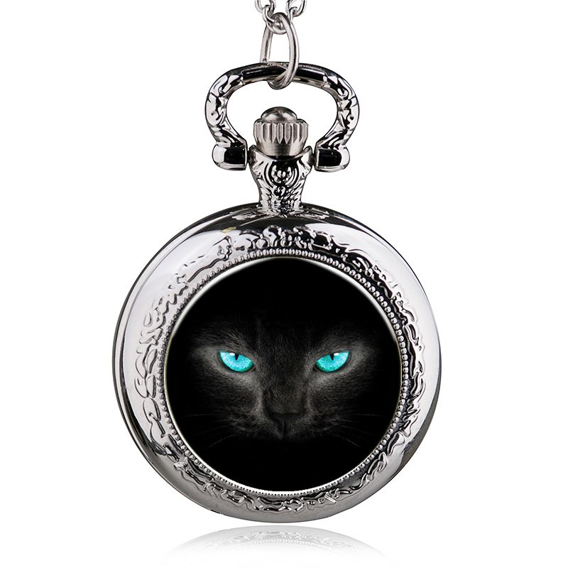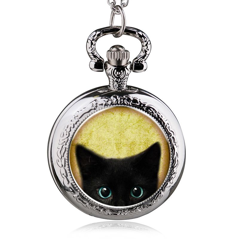 Silver Colorful Cute Cat chain pocket watch necklace wholesale buyer low price antibrittle lady girl women
