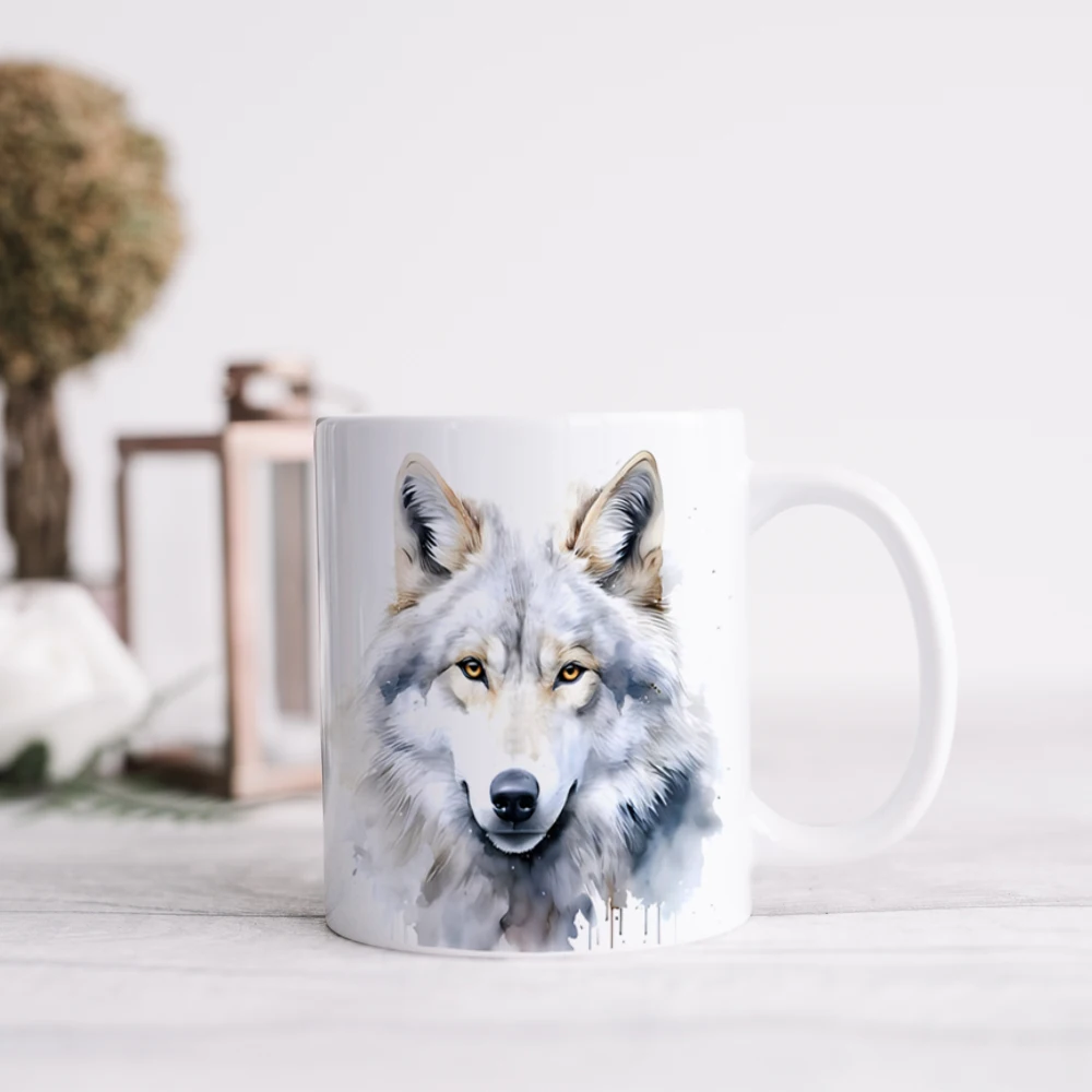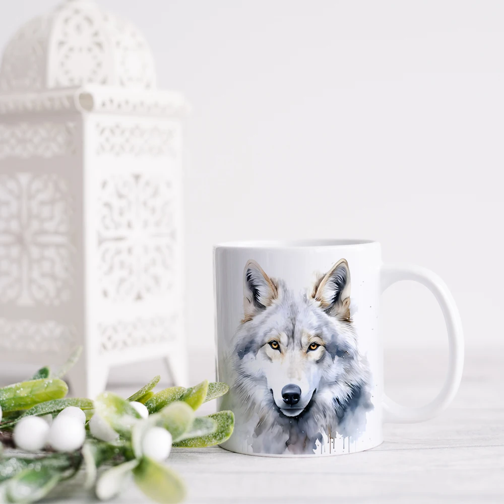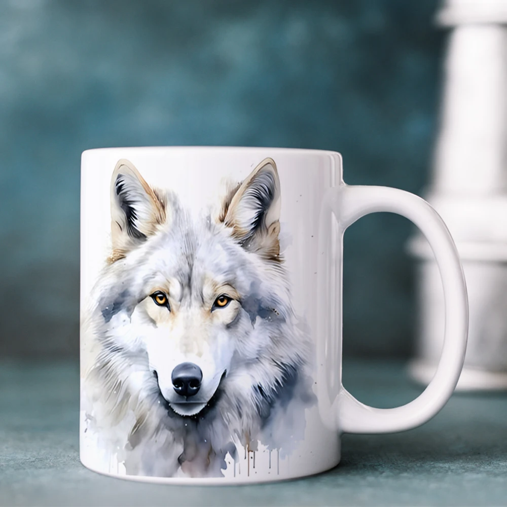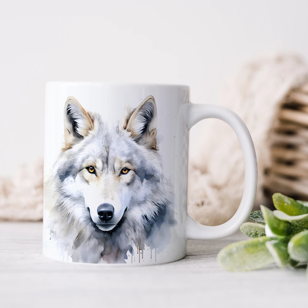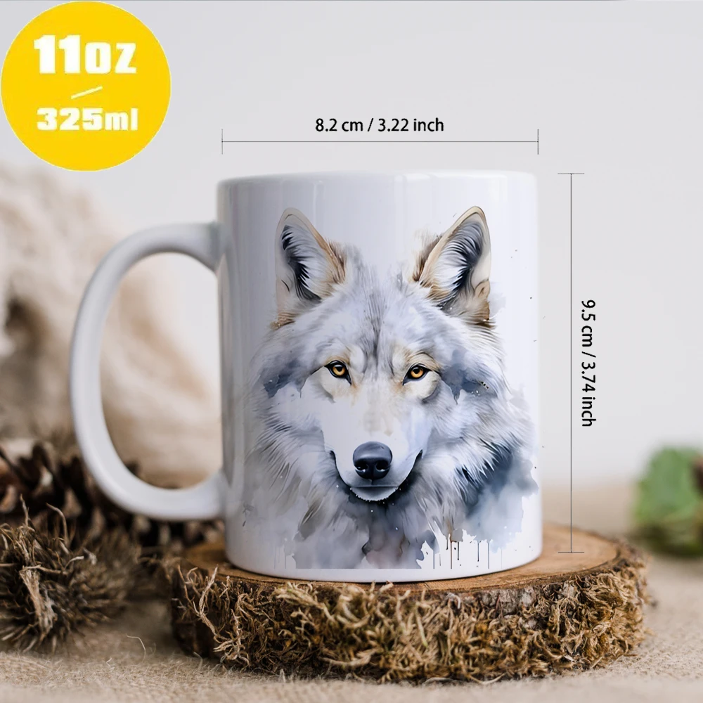1pc The snow king of wolf 320ml Ceramic Coffee Cup Gift Milk Mugs Hand drawn snow wolf tea cup
