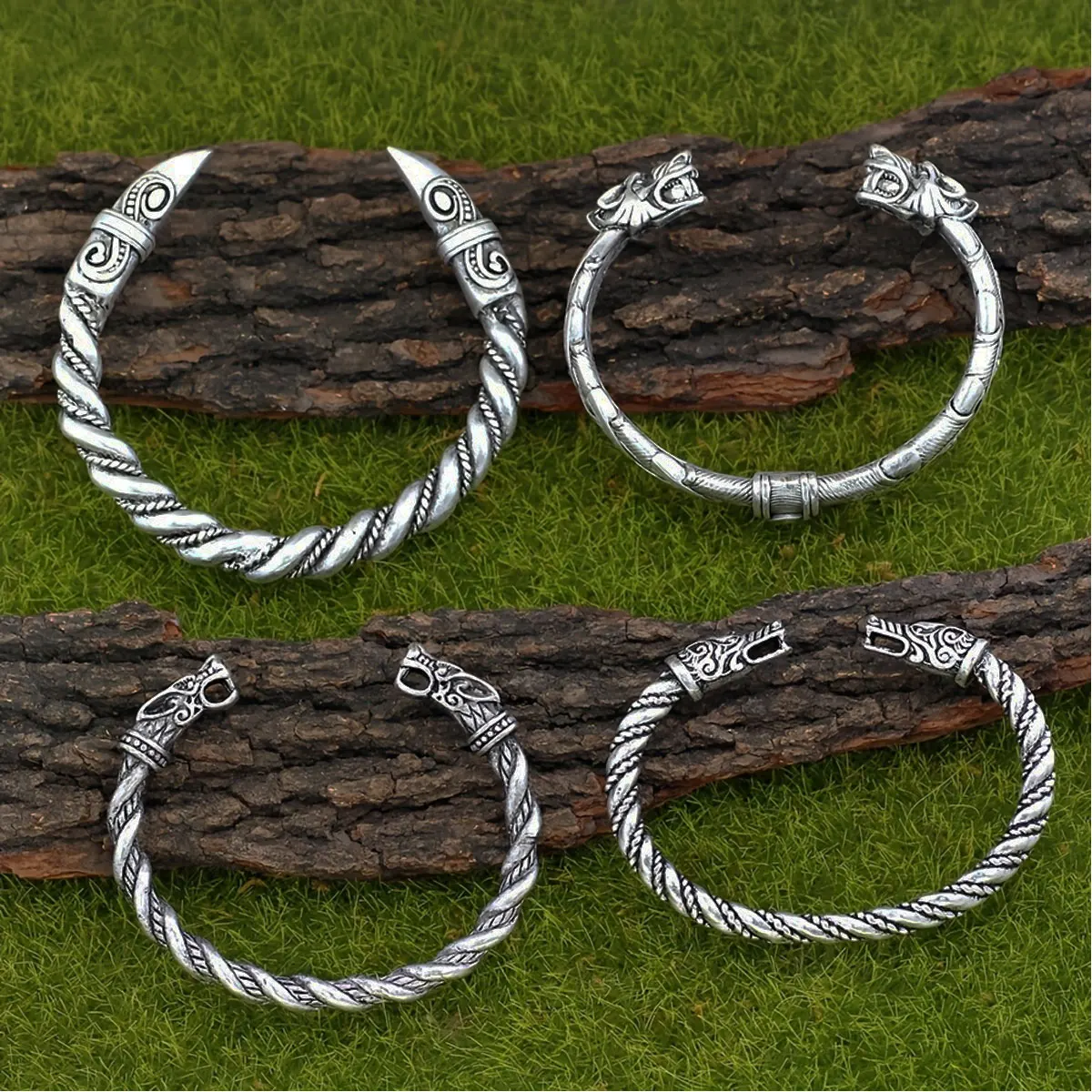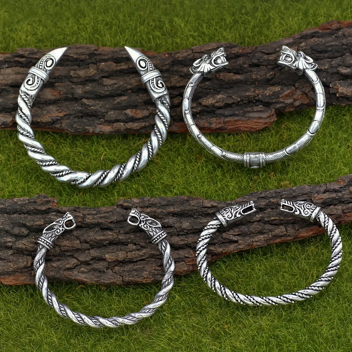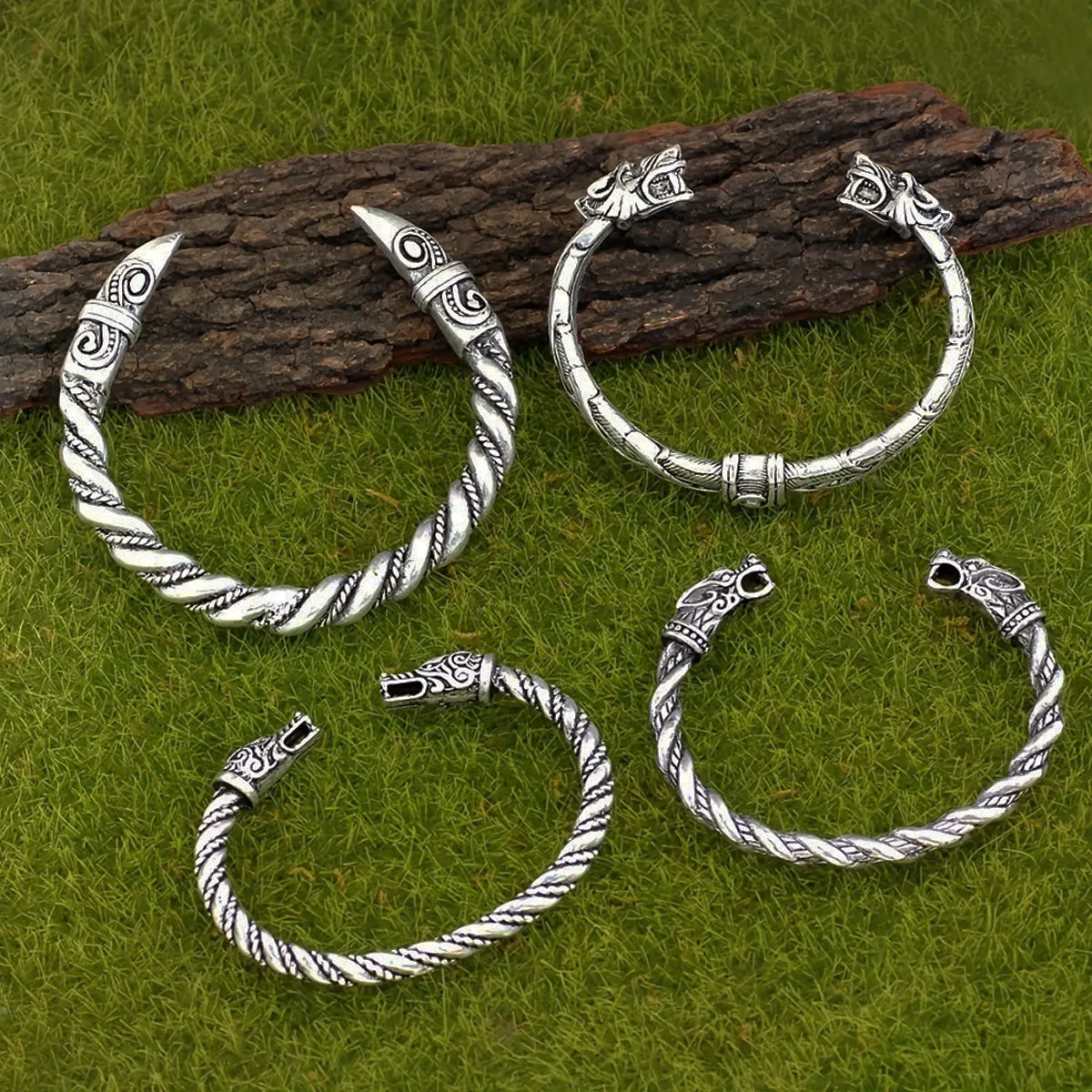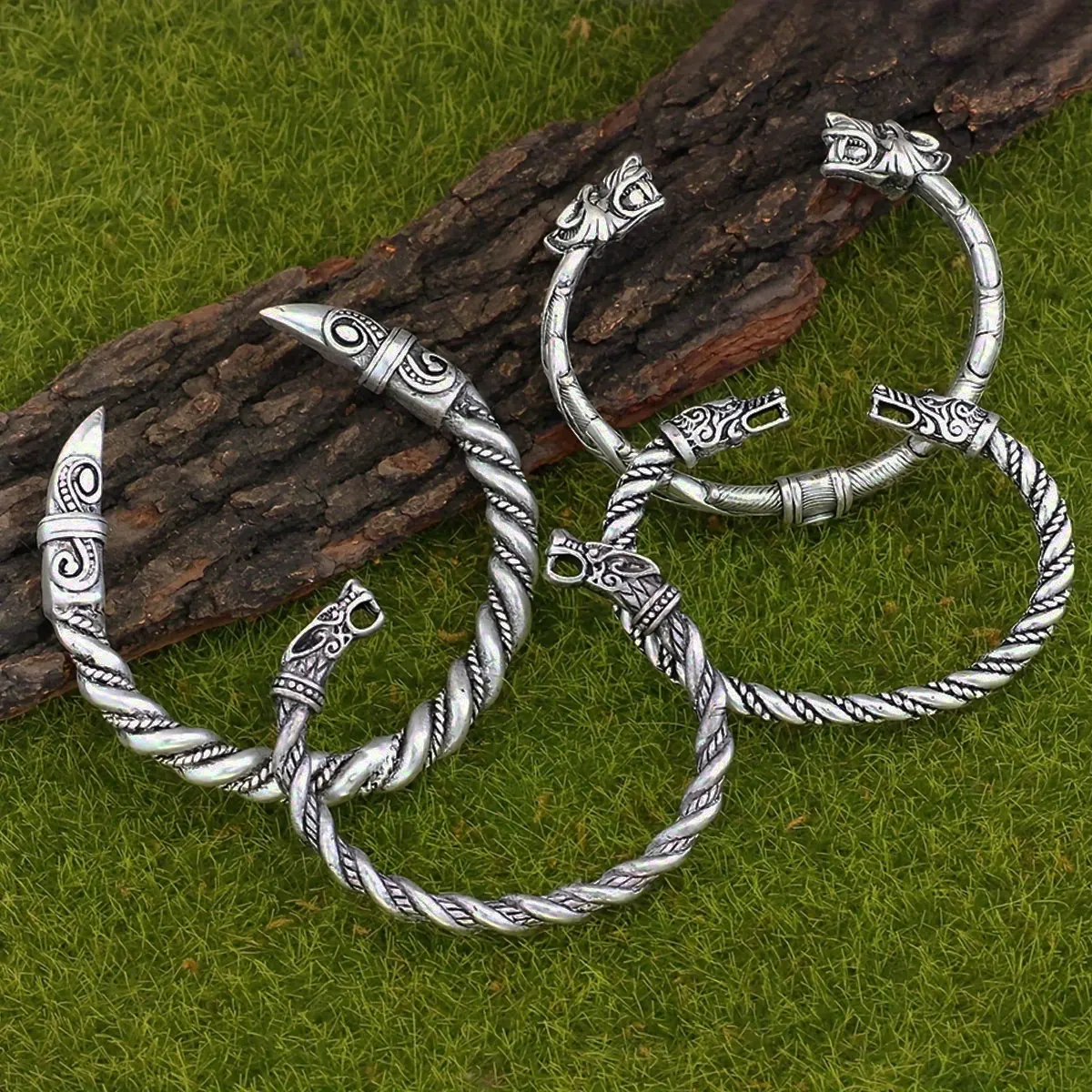 4-piece Nordic Viking Retro Norwegian Wolf Head Crowbeak Bracelet Set Bracelet Party Accessories Talisman Jewelry Birthday Gift