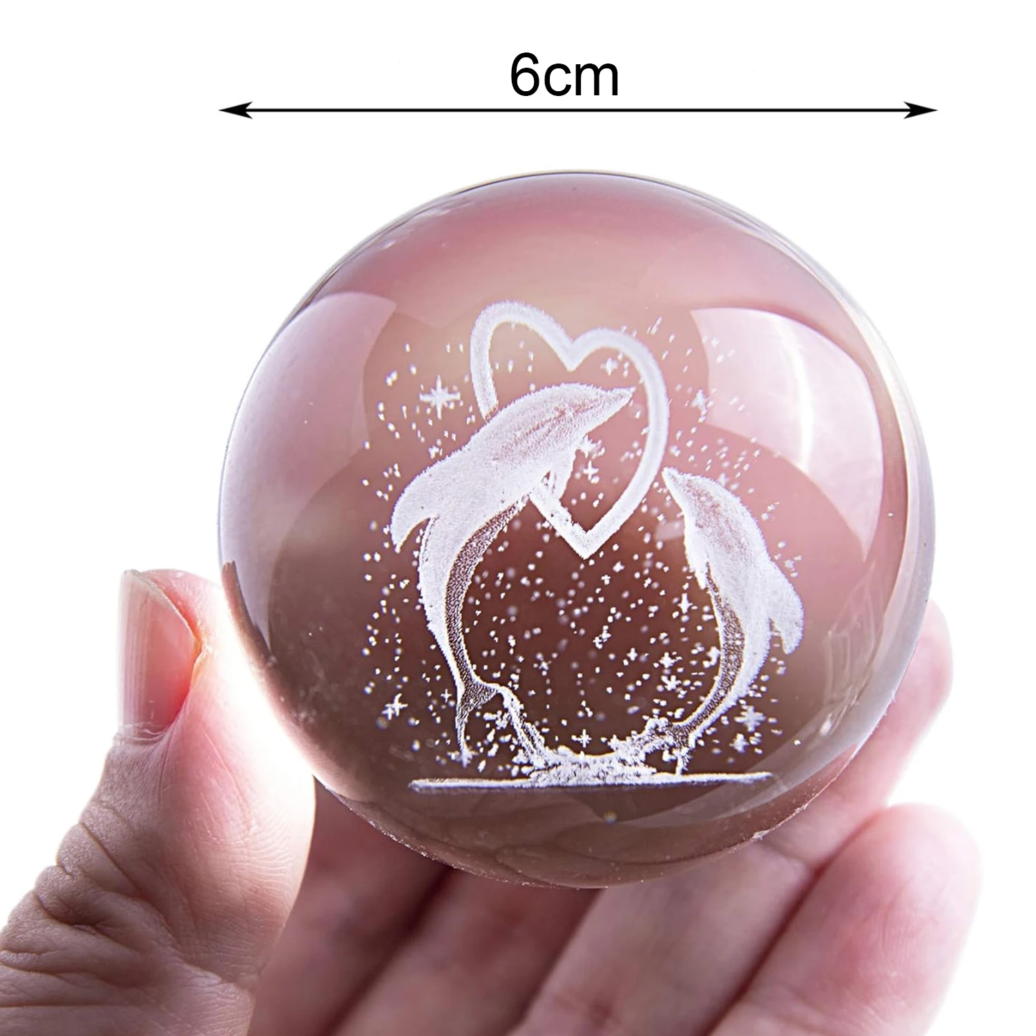 6cm Dolphins Crystal Ball 3D Laser Engraving Decorative Dolphins Mode Glass Sphere Paperweight Figurines Decor Keepsakes Gifts