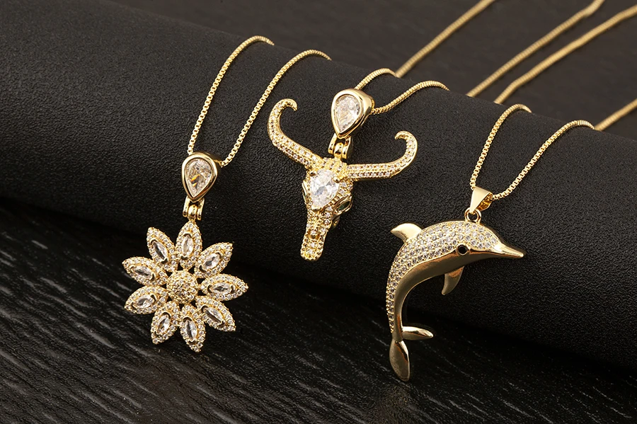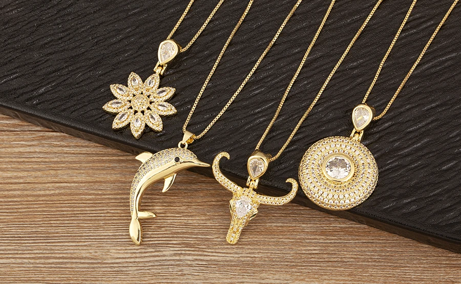 Nidin New Fashion Ox Head/Evil Eye/Flower/Dolphin Shape Charm Pendant Necklace For Female Male Ethnic Style Jewelry Fine Gifts