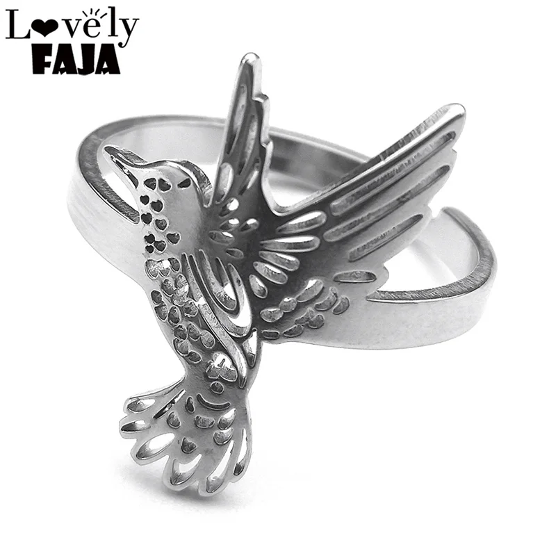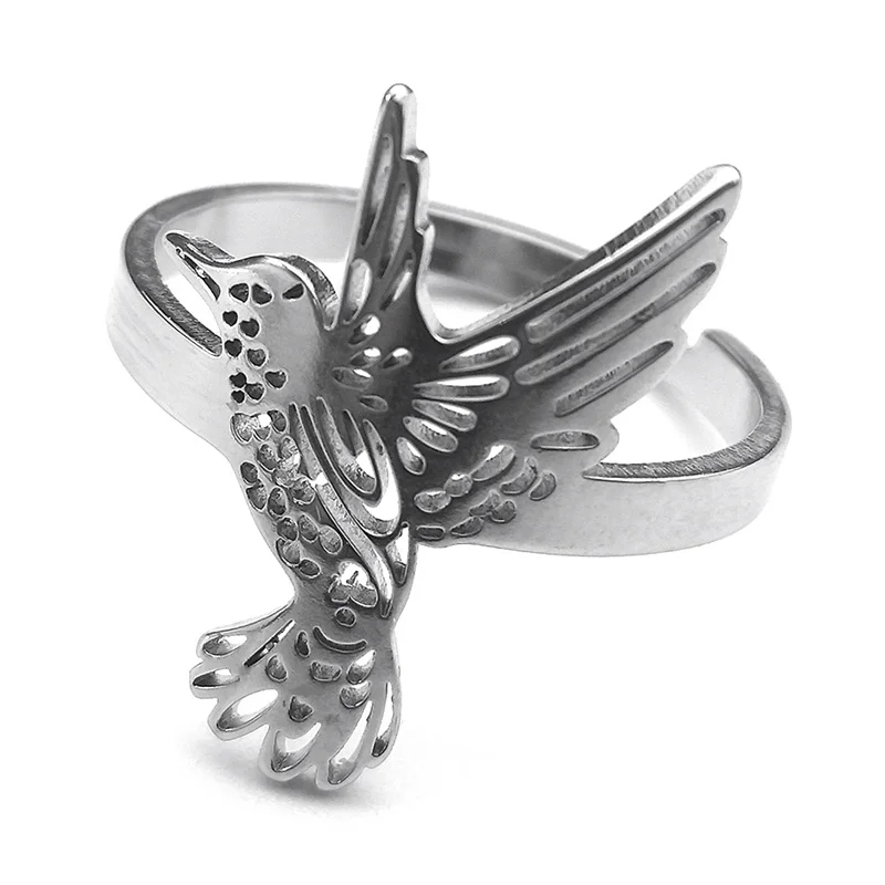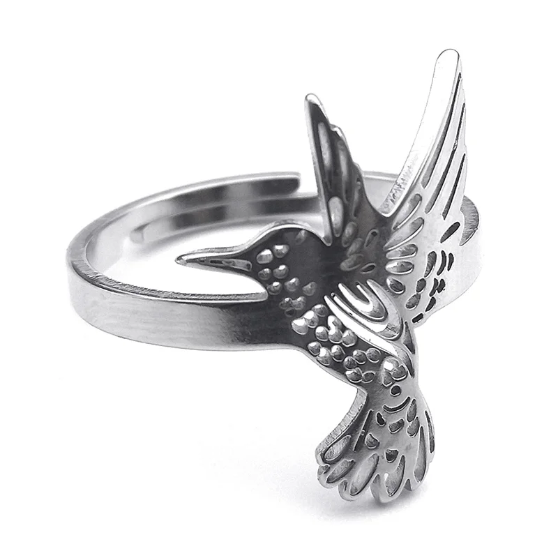 Hummingbird Adjustable Stainless Steel Ring Women Men Bird Finger Rings Hummingbird colibri Jewelry acero inoxidable RRRXXXS03