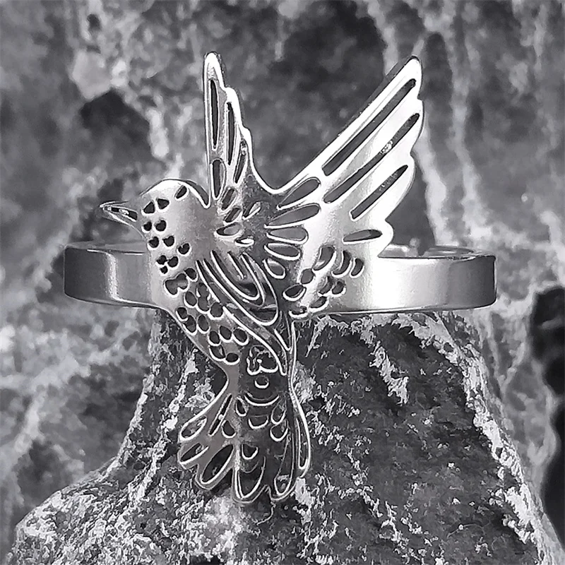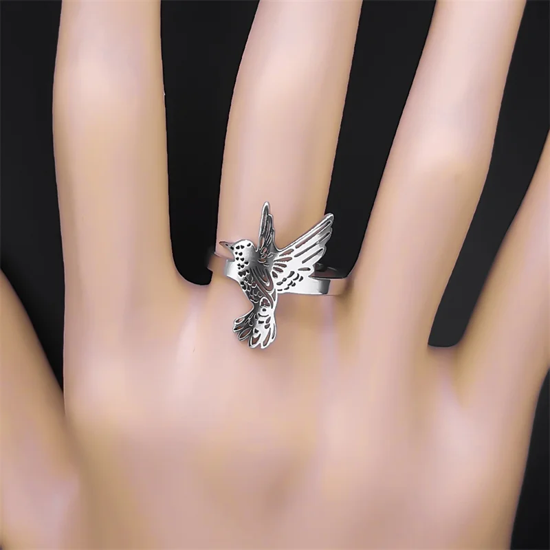 • Hummingbird Adjustable Stainless Steel Ring Women Men Bird Finger Rings Hummingbird colibri Jewelry acero inoxidable