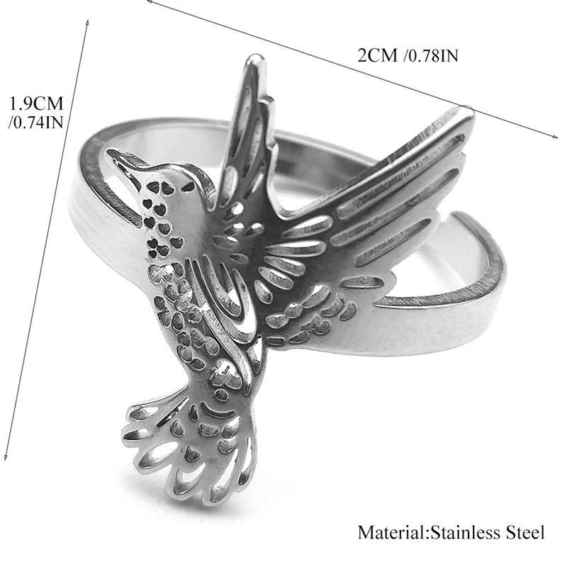 • Style: Women Men Hummingbird Adjustable Stainless Steel RingRing