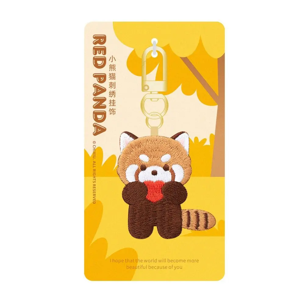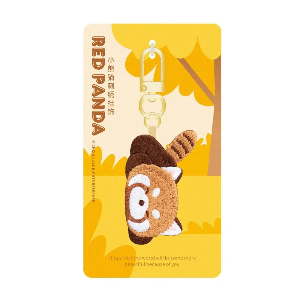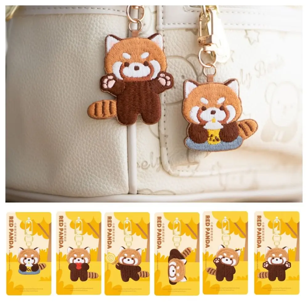 Sleeping Red Panda Keyrchain Kawaii Animal Pendant Creative Red Panda Embroidery Pendant Zoo Gift Bag Pendant Car Pendant