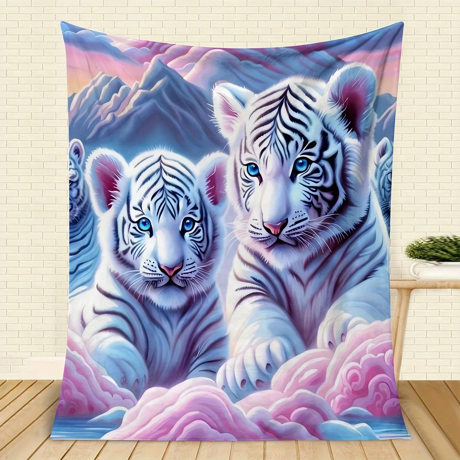 Contemporary Animal Theme Tiger Throw Blanket All-Season Cozy Knitted Blanket High-Definition Digital Printed Cute Tiger Design