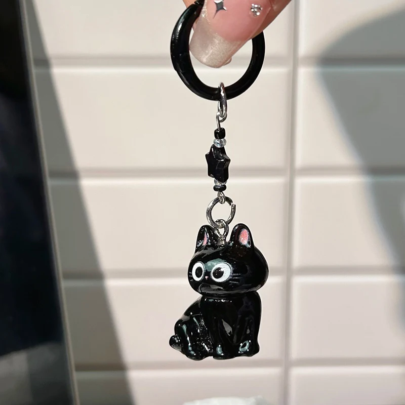 Black Cat Pendant Pendant Q Cute Big-eyed Cat Star Keychain Cartoon Girlfriend Small Gift Bag Accessories