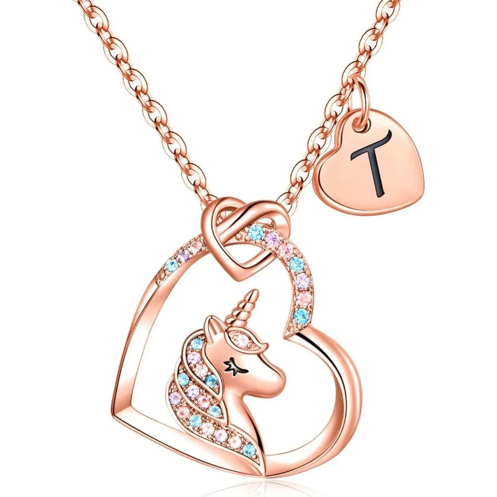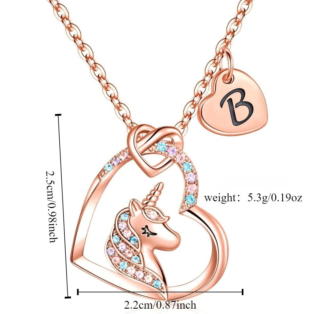 New Unicorn Heart-shaped Necklace 26 Letters Rose Gold Versatile Style Graduation Season Gift for Classmates